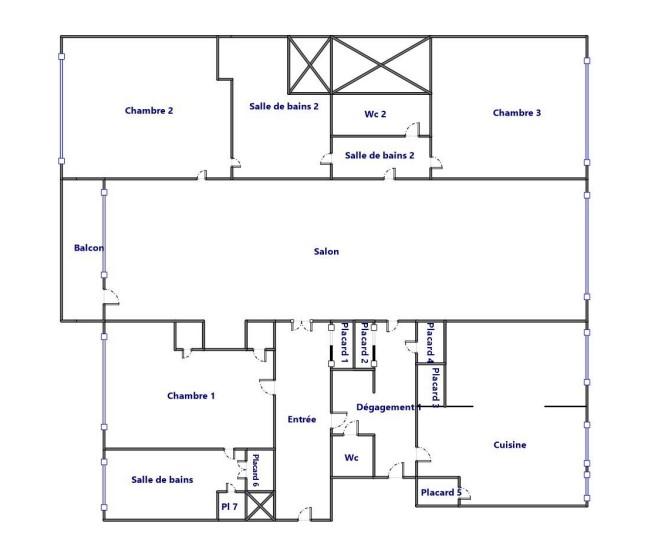 Il est composé d'une entrée avec placard, d'un wc, d'un dégagement avec placard desservant une cuisine complètement équipée avec son espace repas, d'un double séjour traversant, d'une suite parentale (chambre et salle de bain et douche avec un placard),
