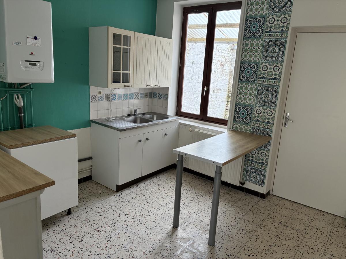 Maison de courée, 57m2, pièce de vie, cuisine, salle de bains; à l'étage:2 chambres. Chauffage gaz. pas de jardin, pas de garage. Environnement calme. 560€ et 23€ ch (TOM et entretien chaudière). Dépôt de garantie:560€, frais:560€. IMPERATIF:1800€ CDI