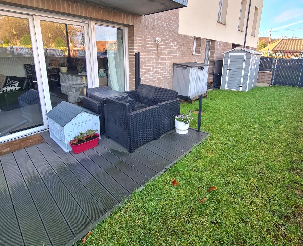 QUESNOY SUR DEULE Type 2 en rez-de-jardin avec un parking dans une résidence récente offrant 54 m² de surface habitable et un jardin avec terrasse d'environ 39 m².Il dispose d'une entrée, un séjour-cuisine semi- équipée donnant sur le jardin, une chambre, un wc et une salle de bains. Cet appartement est aux normes PMR. Charges : 267€/trimestre (eau, syndic, espaces verts, communs, assurances