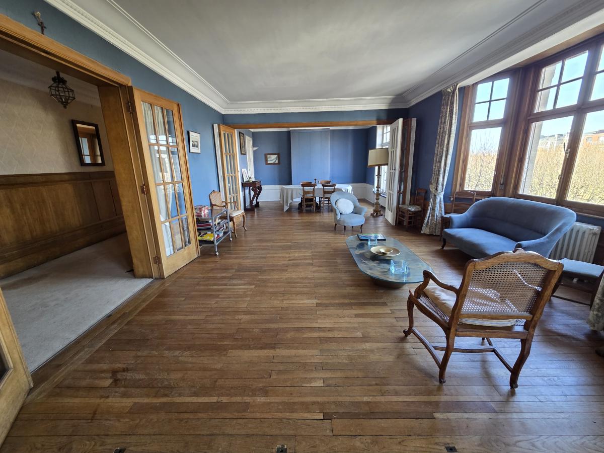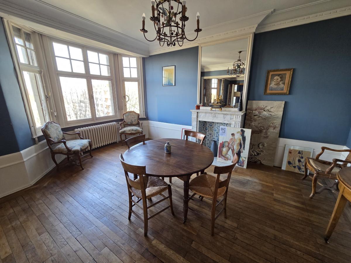 A VENDRE A LILLE, sur la place du Maréchal Leclerc, devenue un parc entièrement végétalisé, à moins de 5 minutes à pied du métro Cormontaigne, Un appartement de charme, de 165 m2 habitables, situé au 5eme étage, dans une superbe copropriété ancienne de charme, avec ascenseur. Il comprend un très grand hall d'entrée, une très belle pièce de vie parquetée avec un avancée en baw window qui ajoute charme et lumière, ( 55 m2 ) une cuisine séparée donnant accès à une petite loggia, 4 chambres - certaines avec un point d'eau, 1 salle de bains, 1 wc séparé.