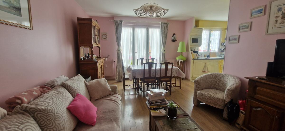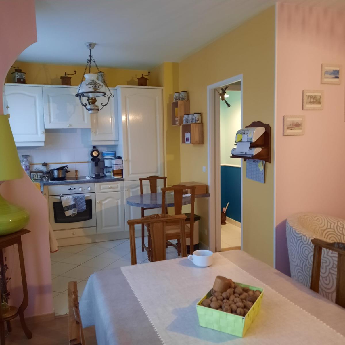 Il comprend un grand hall d'entrée avec placard, une très belle pièce de vie lumineuse, une cuisine équipée , 2 chambres, 1 salle de douches, 1 wc séparé.