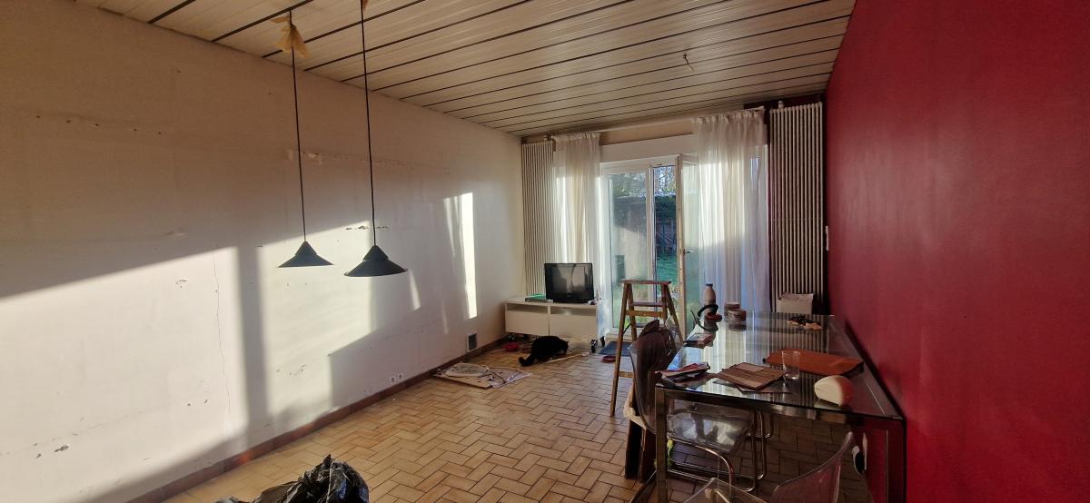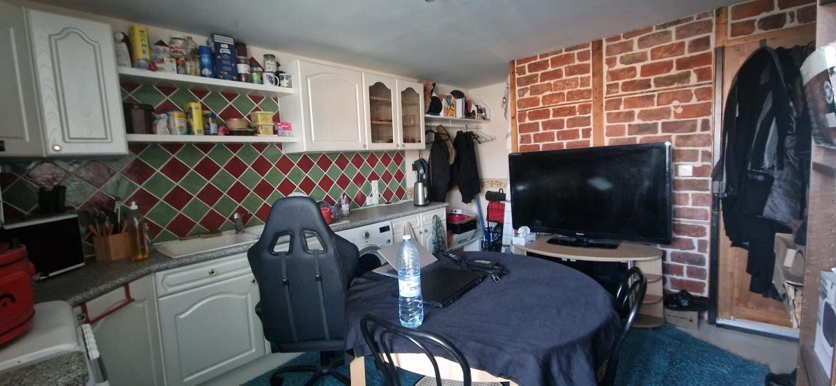 A vendre immeuble de rapport composé d'un appartement type 2, (loué 531 euros HC/mois) en bon état et d'une maison (à rénover, libre) 4 chambres possibles.