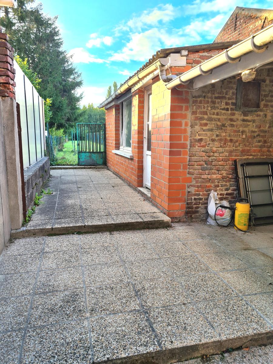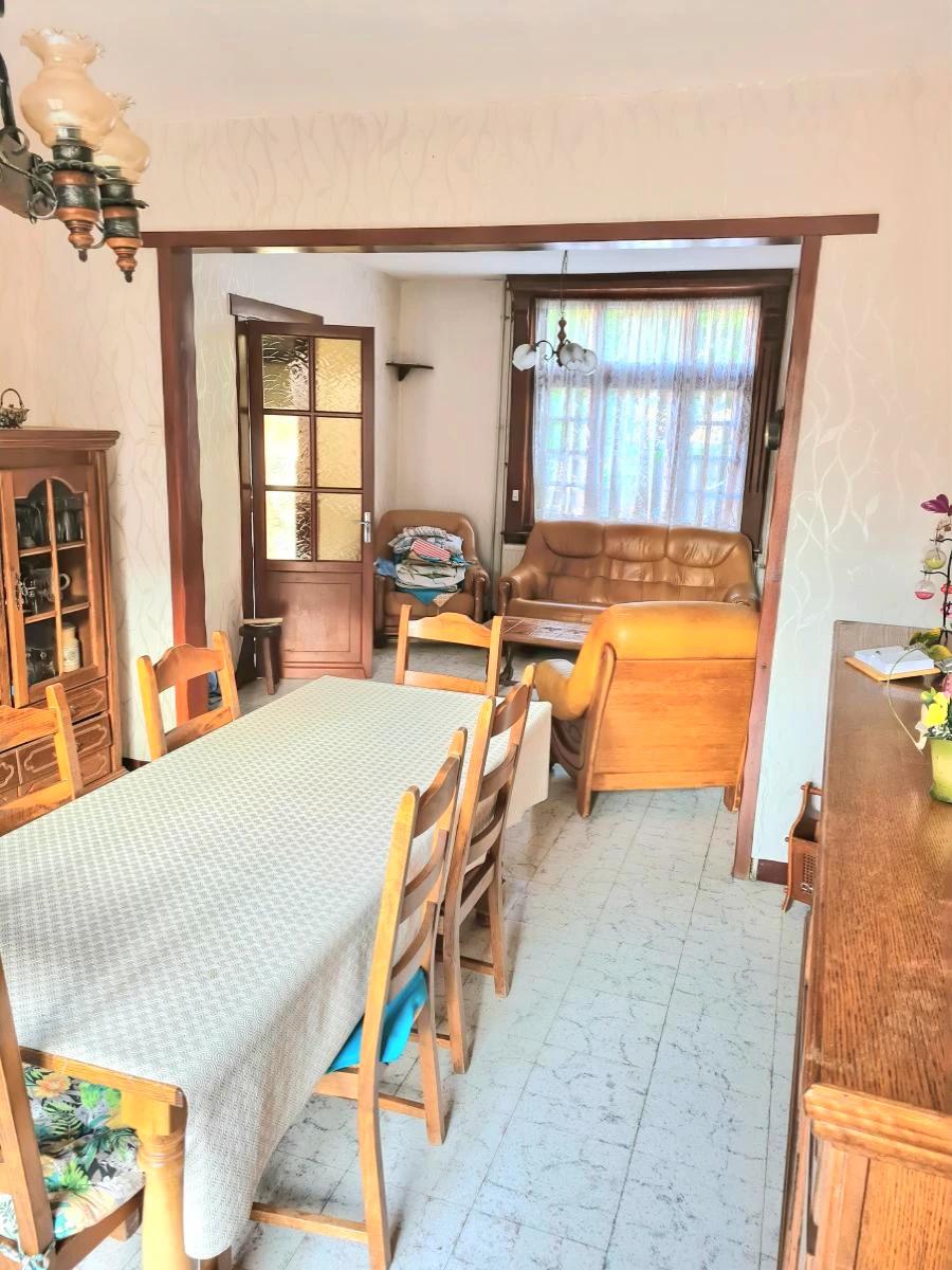 NIEPPE proche château maison 1930 semi - individuelle à vendre sur une parcelle de 485 m² et offrant 107m² de surface habitable + un grenier aménageable d'environ 24m². Elle dispose d'un hall d'entrée, d' un séjour - salon donnant sur la terrasse, d' une cuisine, d'une salle de douche et d'un wc. Au 1er étage : 2 chambres et un bureau. Au 2nd : un grand grenier aménageable. Une cave et deux dépendances. Le jardin mesure environ 400m². Prévoir une rénovation complète (tout à l'égout ok et chauffage central gaz). DPE : G (487)/ G (101) consommation énergétique annuelle abonnements compris entre 452€ et 6170€.