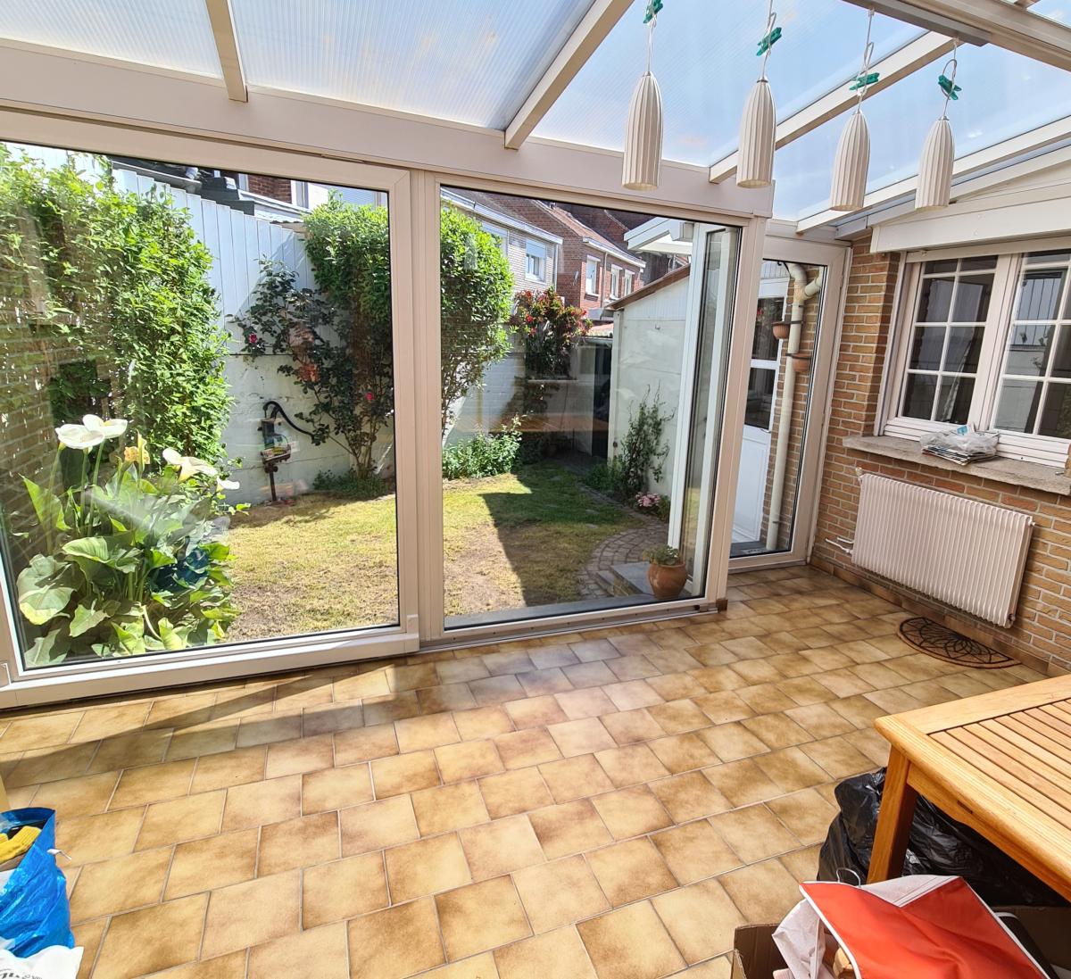 SAINT ANDRE LEZ LILLE Maison des années 50 à proximité du centre ville. Elle offre 94 m² de surface habitable avec un extérieur et 2 dépendances. Elle dispose d'un hall d'entrée, un séjour - salon en L donnant sur une véranda, une cuisine équipée séparée, une buanderie, un wc. A l'étage : 3 chambres et une salle de douche avec wc. Une cave de 11 m². Jardinet bien exposé. BIEN SITUEE ET AU CALME.