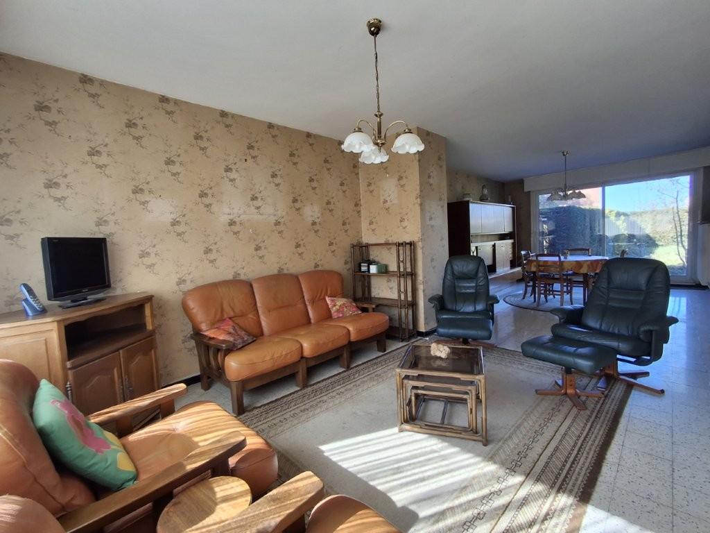 Maison de lotissement SPACIEUSE, en retrait de rue avec GARAGE mitoyen + aire de stationnement, construite vers 1980 sur une parcelle de 733m²