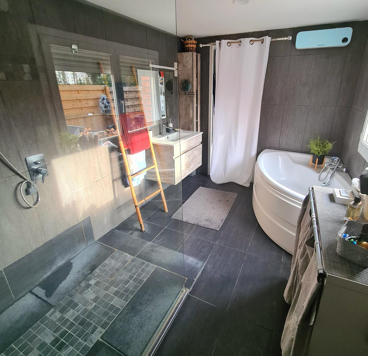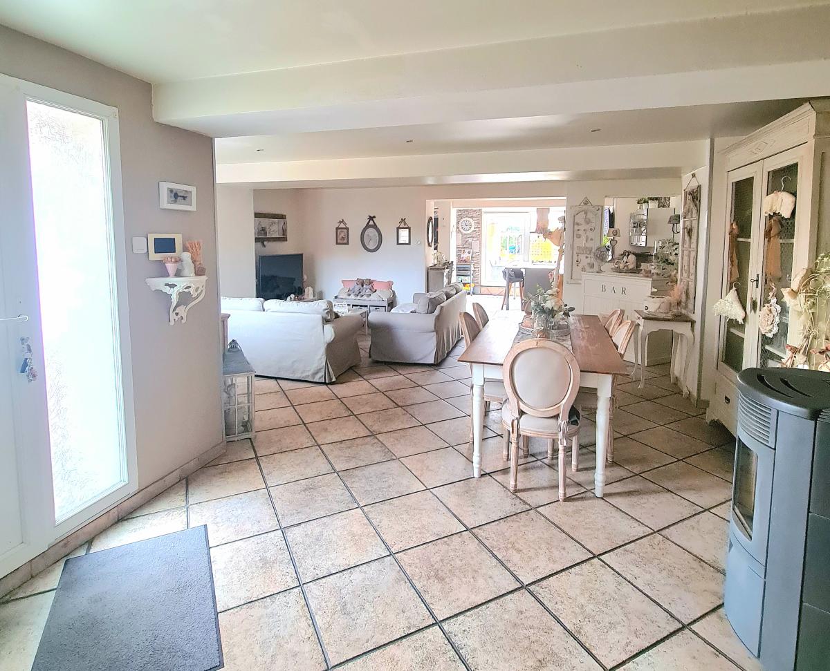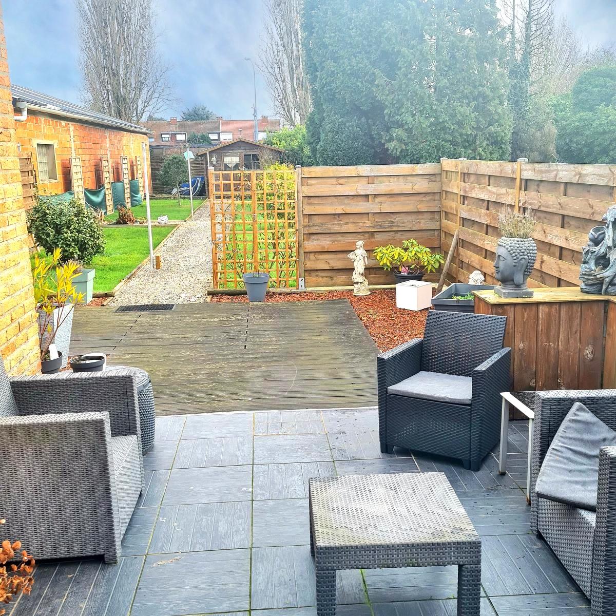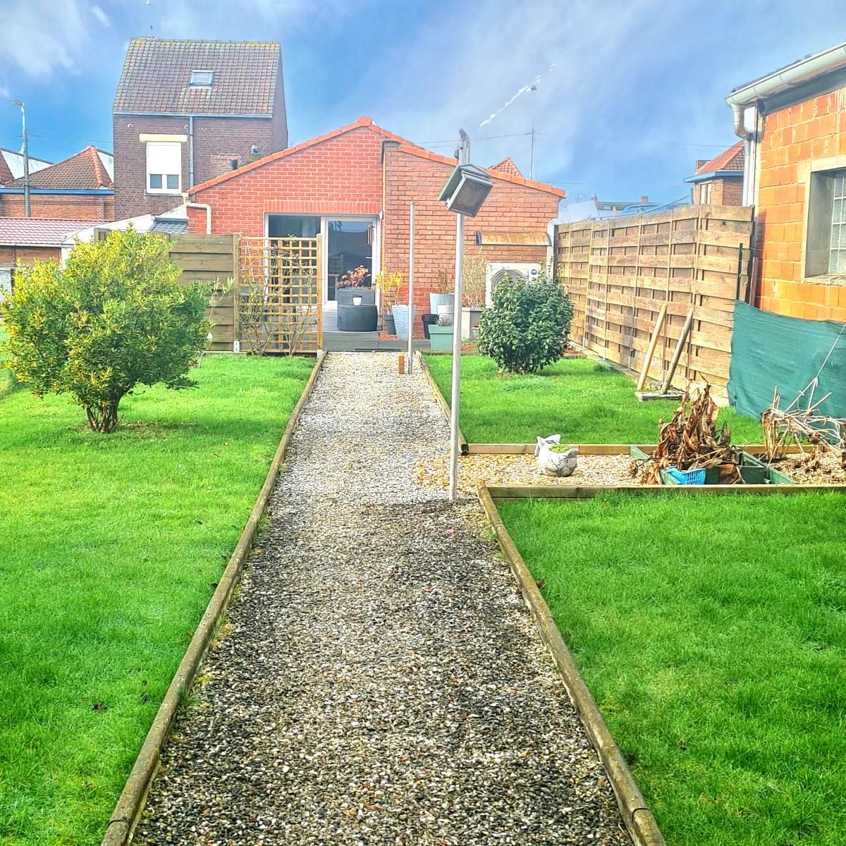COMINES proche centre ville semi-plain pied individuel de 130m² de surface habitable sur une parcelle de 481 m². Le garage étant devant la maison vous bénéficiez d'un calme dans ce charmant semi-plain pied atypique chauffé via pompe à chaleur avec la climatisation réversible (été/hiver) et un poêle à pellets tubé. Les panneaux solaires (posés en 2023)sont un confort supplémentaire grâce à une auto consommation de leur production (de plus EDF rachète le surplus de consommation en fin d'année). Il dispose d'une entrée avec 3 placards sur un séjour-salon de 45 m² et une cuisine équipée ouverte de 27 m² donnant sur la terrasse de 21 m²et son jardin d'environ 250m² (vis à vis limité avec les arbres et clôture autour de la maison), une salle de douche (douche italienne), une buanderie, 3 chambres dont une à l'étage et un grand dressing ou bureau. Un cabanon. VMC.
