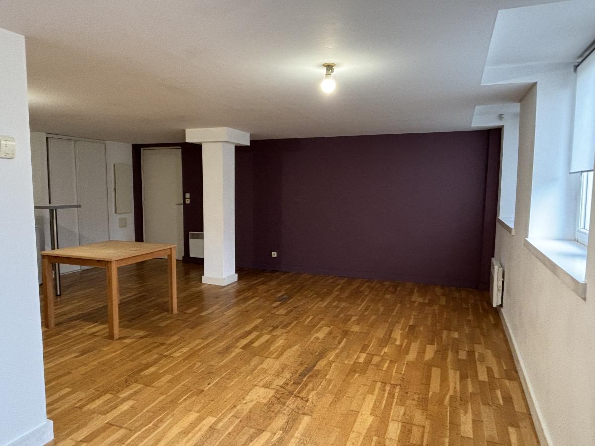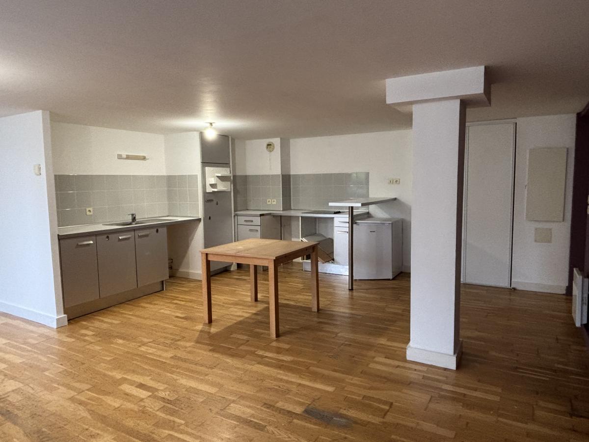 Appartement Type 3 au 1er étage (ascenseur) comprenant grand séjour lumineux avec cuisine ouverte équipée, 2 chambres, salle de bains avec baignoire, WC séparés.