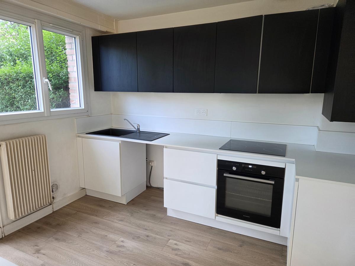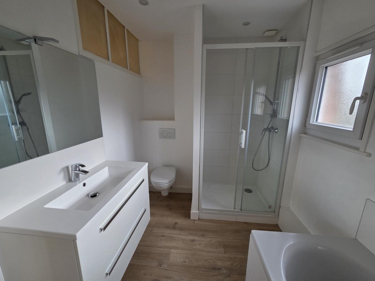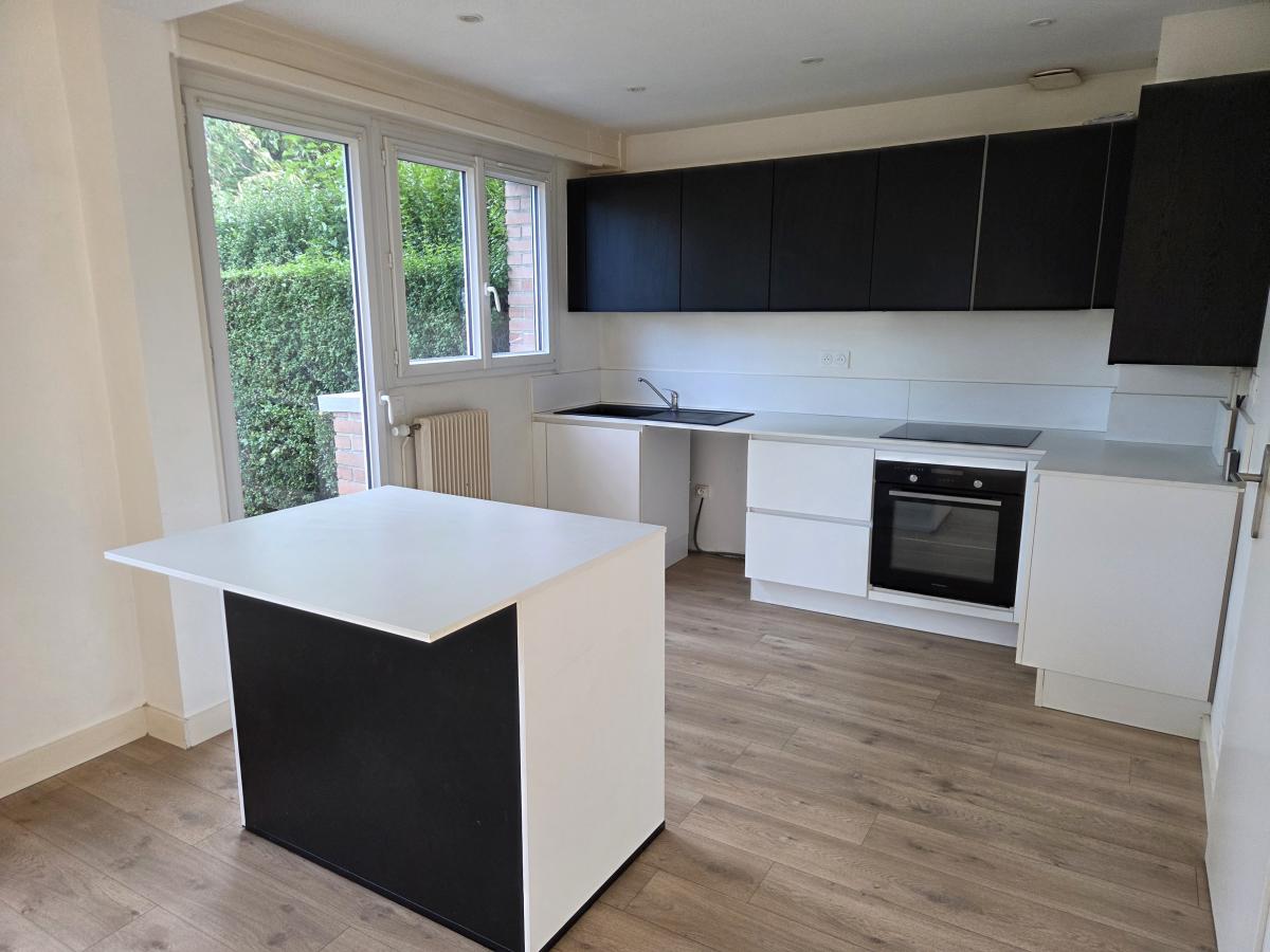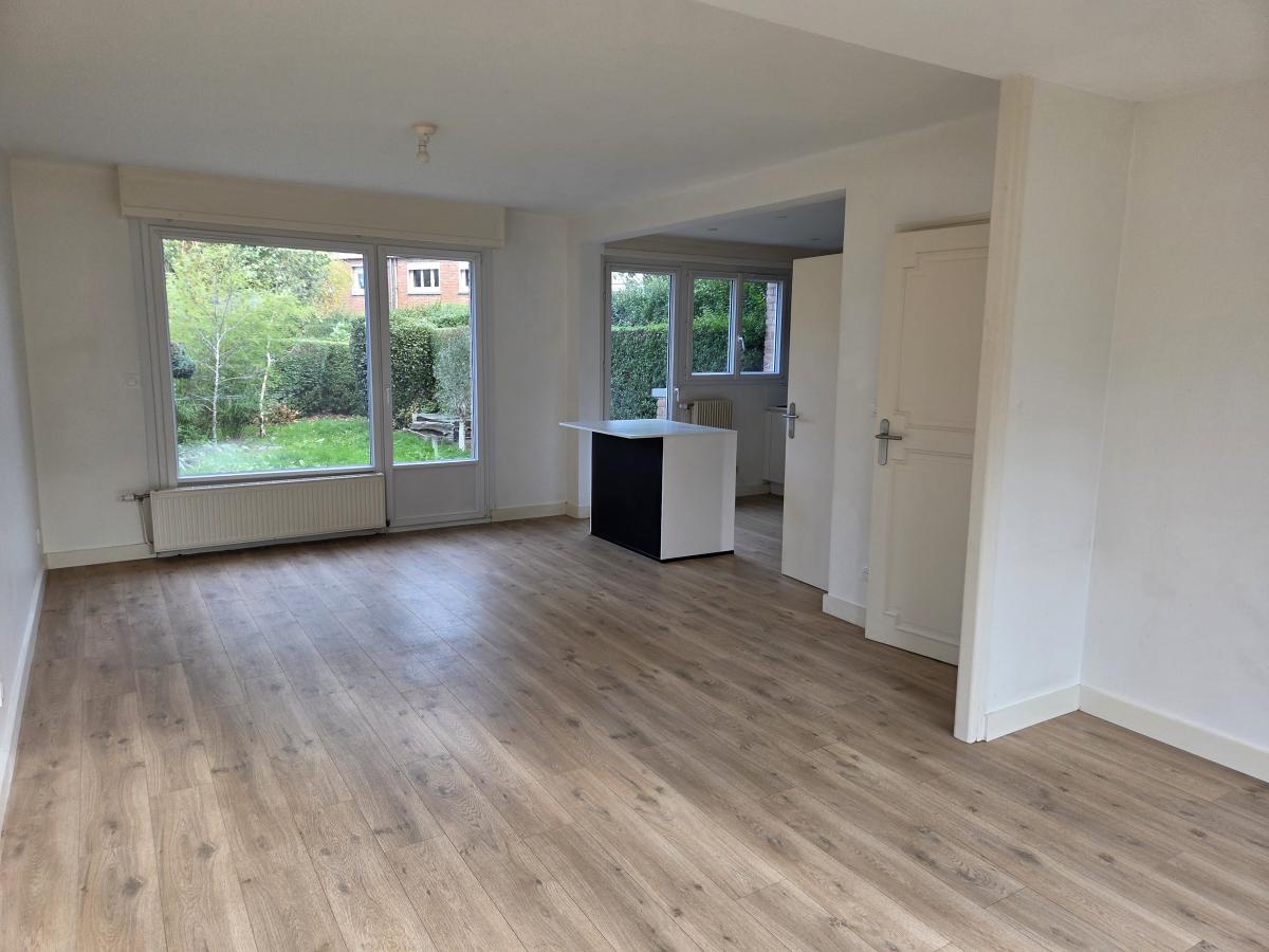A LOUER A MARCQ EN BAROEUL, DANS LE QUARTIER DES HAUTES LOGES- UNE MAISON DE STYLE BATIR - RÉNOVÉE TRES RECEMMENT - COMPRENANT UNE BELLE PIÈCE DE VIE PARQUETÉE OUVERTE SUR UNE CUISINE TOUTE ÉQUIPÉE AVEC UN ILOT CENTRAL - A L ÉTAGE : 3 CHAMBRES + UNE SALLE DE BAINS - UN PLACARD SUR LE PALIER - 2 WC -