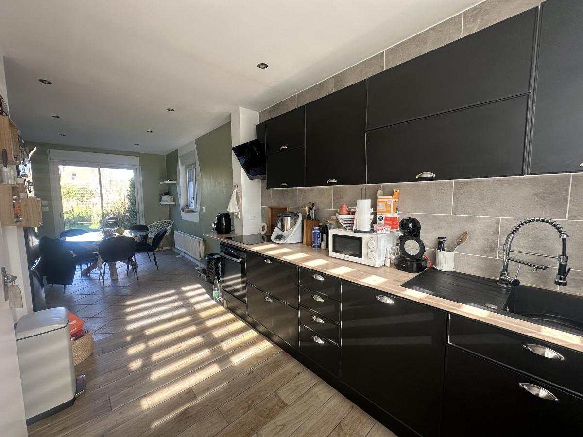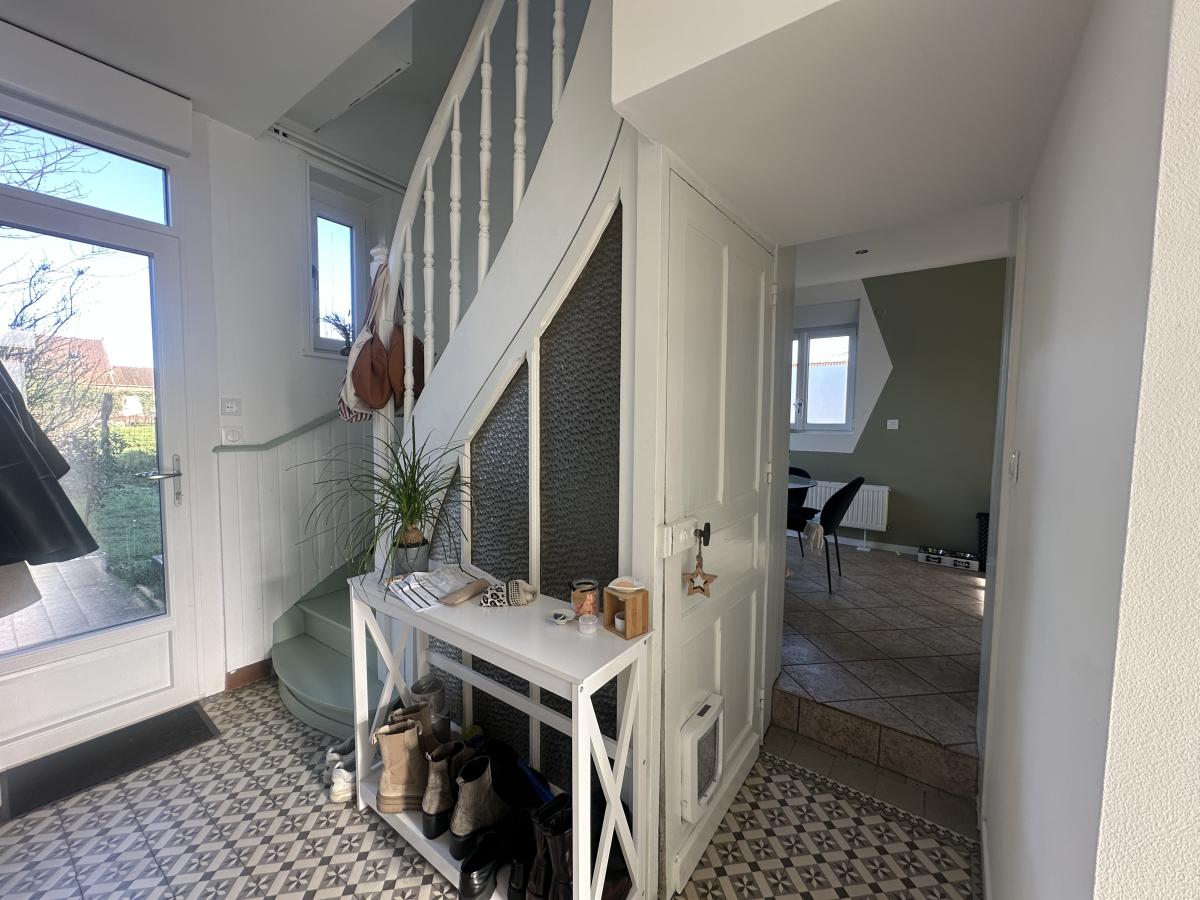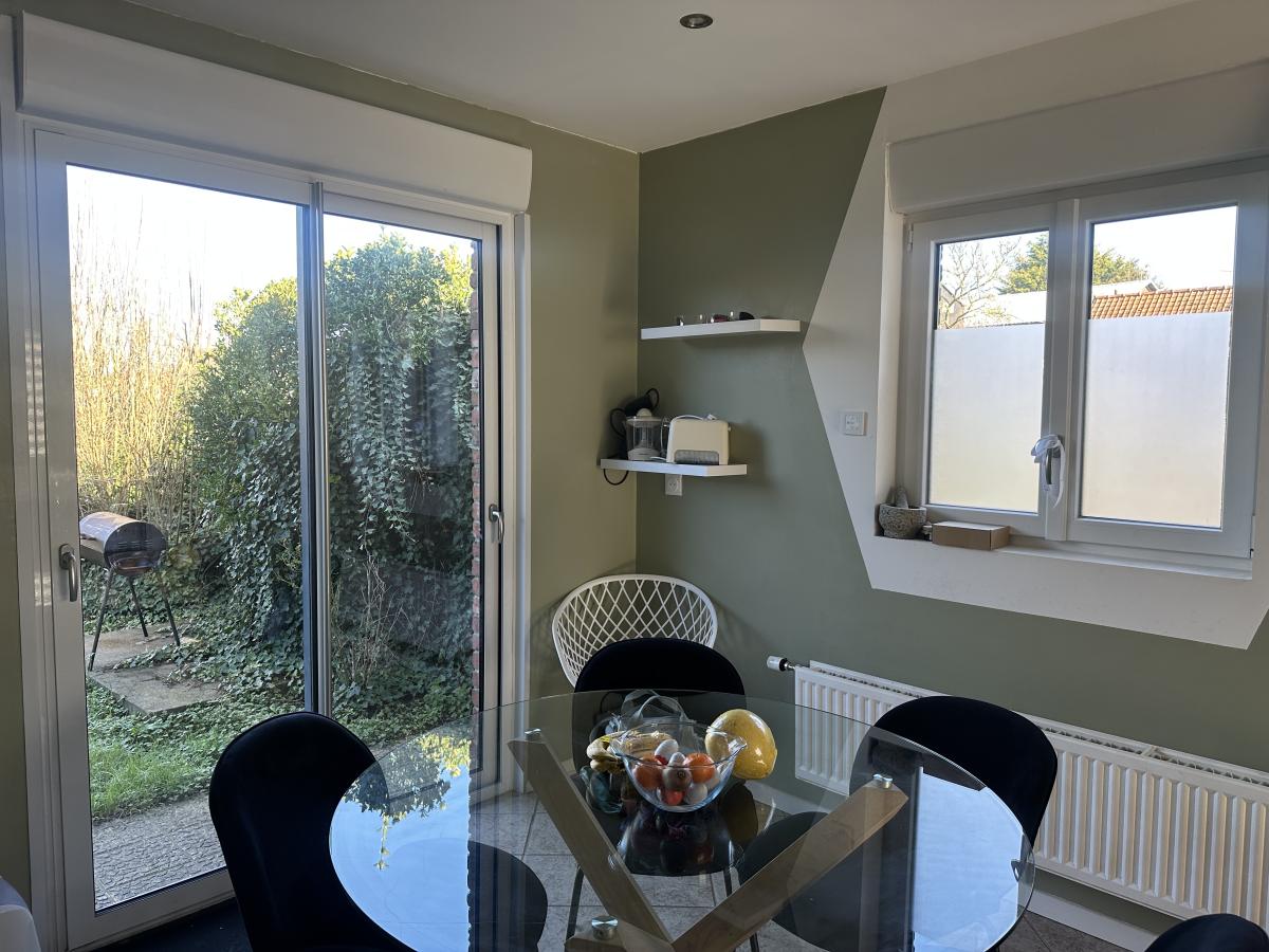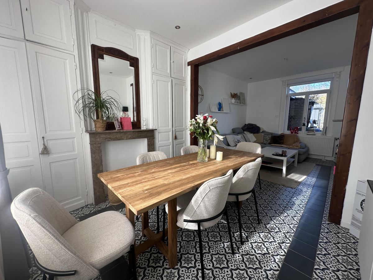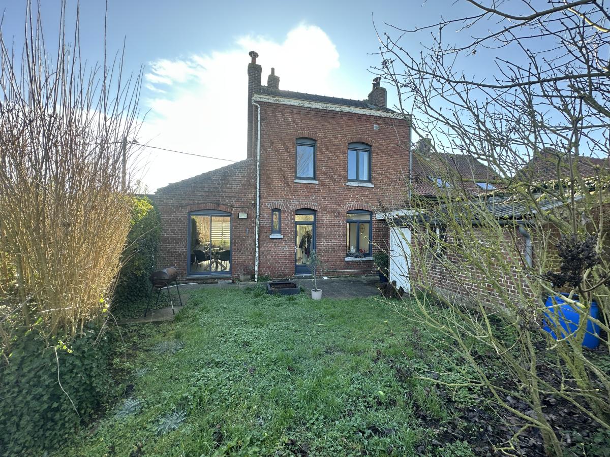 A louer à Fromelles, charmante maison semi-individuelle composée d'un hall d'entrée, un salon/séjour lumineux, une cuisine équipée avec un coin repas donnant sur le jardin, une salle de douche et un WC. A l'étage, une grande chambre, une pièce utilisée en dressing et un bureau. Un grenier et une cave complètent le bien. A l'extérieur, un garage 1 véhicule avec porte motorisée, une dépendance à l'arrière avec un jardin clos sans vis-à-vis.