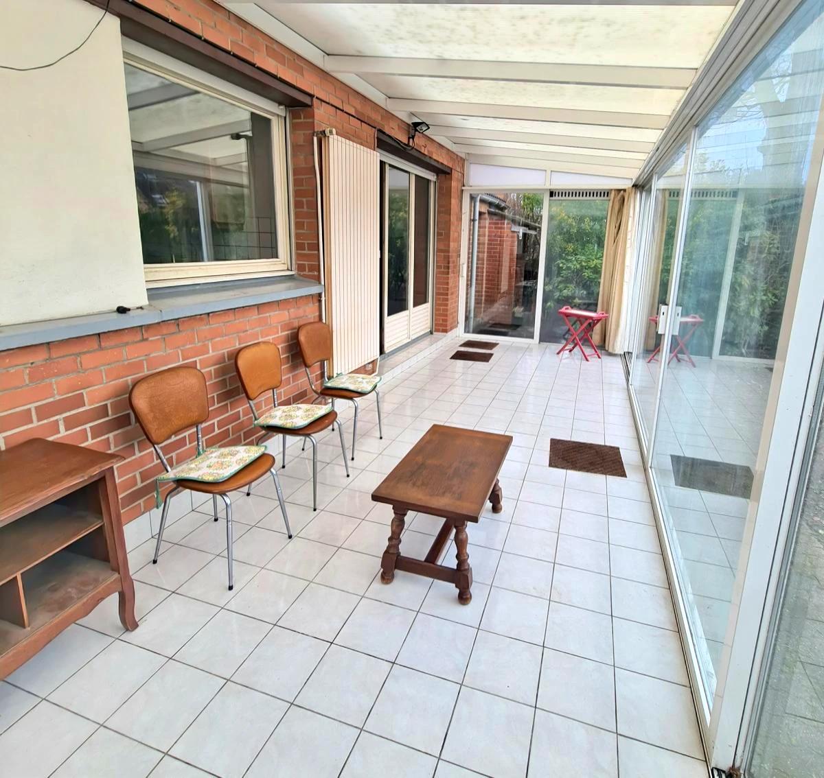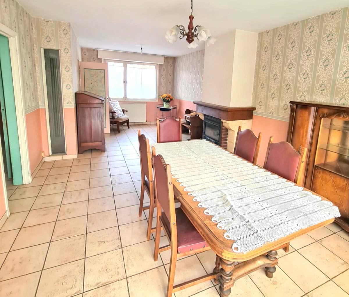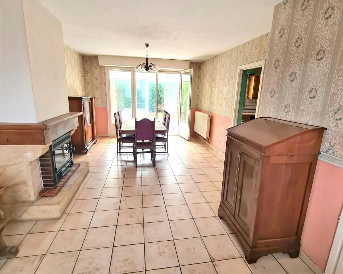 QUESNOY SUR DEULE Maison de lotissement semi-individuelle offrant environ 96 m² de surface habitable sur une parcelle de 392m². Elle dispose d'un hall d'entrée avec un vestiaire, un wc, un séjour-salon avec une cheminée feu de bois, une cuisine équipée et une véranda. A l'étage : 4 chambres, une salle de bains et un grenier aménageable. 2 garages et 2 places de parking. Une buanderie. Un jardin clos et planté d'environ 200m².