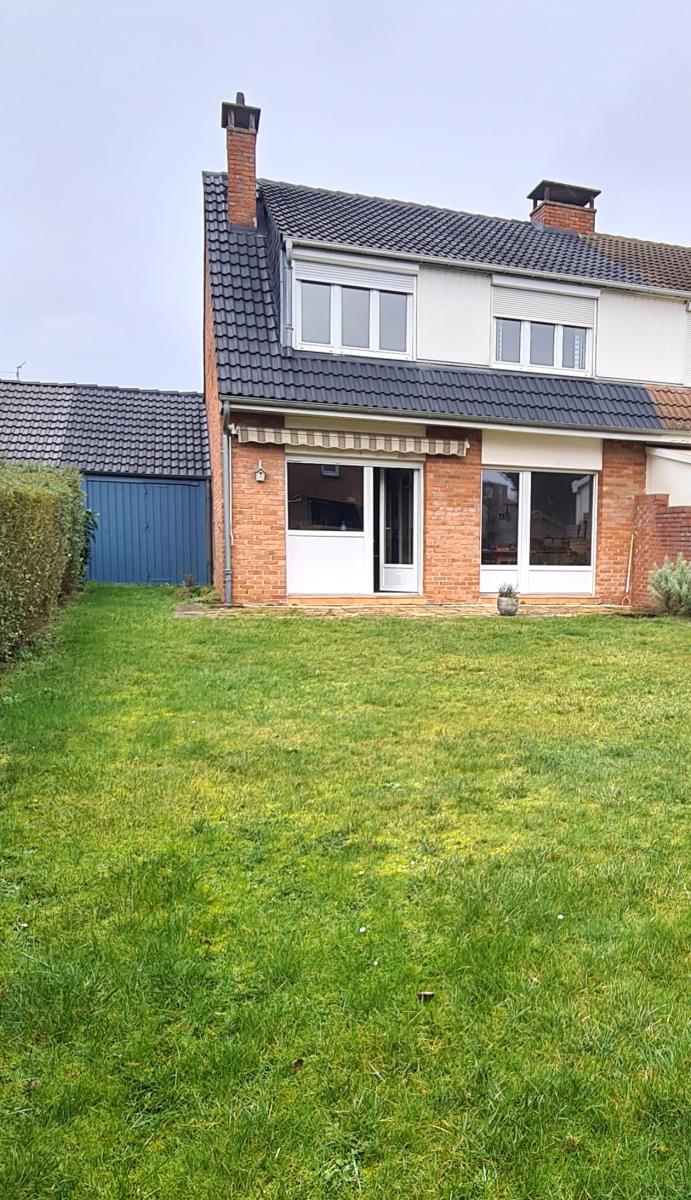 WAMBRECHIES Maison semi - individuelle de 87 m² sur une parcelle de 300m². Elle dispose d'une entrée avec vestiaire , un séjour-salon, une cuisine...