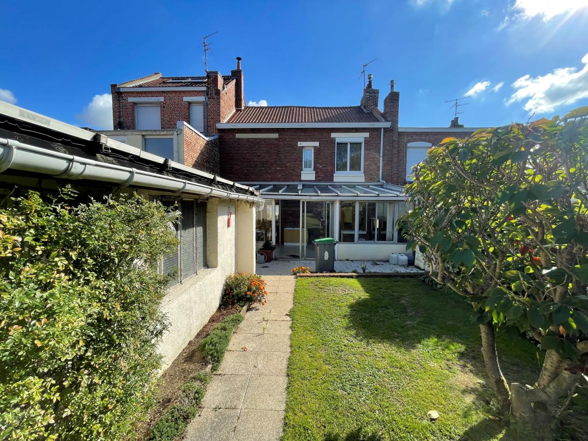 Commune de Capinghem à deux pas du métro saint philibert vaste maison de 110m2 sur 449m2 de terrain, composée en double distribution d'un salon, séjour, cuisine équipée ouverte, véranda, 4 chambres et salle de bains à l'étage. grand jardin et garage.