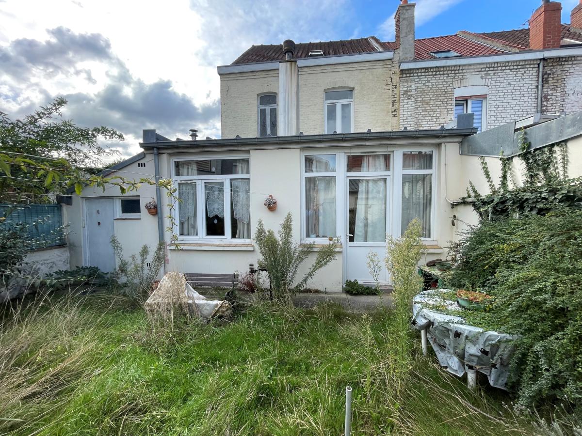 Commune de Lomme maison type semi bourgeoise prévoir quelques travaux, hall, salon séjour avec parquet et cheminée d'origine, cuisine, extérieur (jardinet), garage. 3 chambres et bureau dans les étages (3 niveaux),