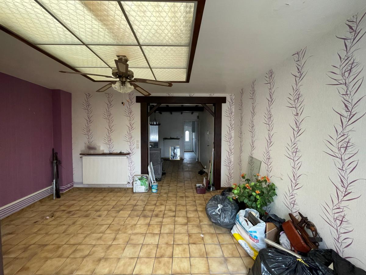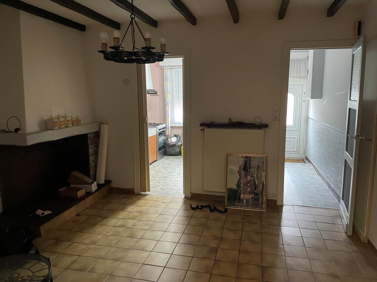 Maison 1 seule mitoyenneté composée d'un hall, cuisine, salon séjour, wc, salle de douche en rdc, au 1er étage 2 grandes chambres, au second grenier. Joli jardin sur arrière. chauffage central au gaz de ville. TAE.