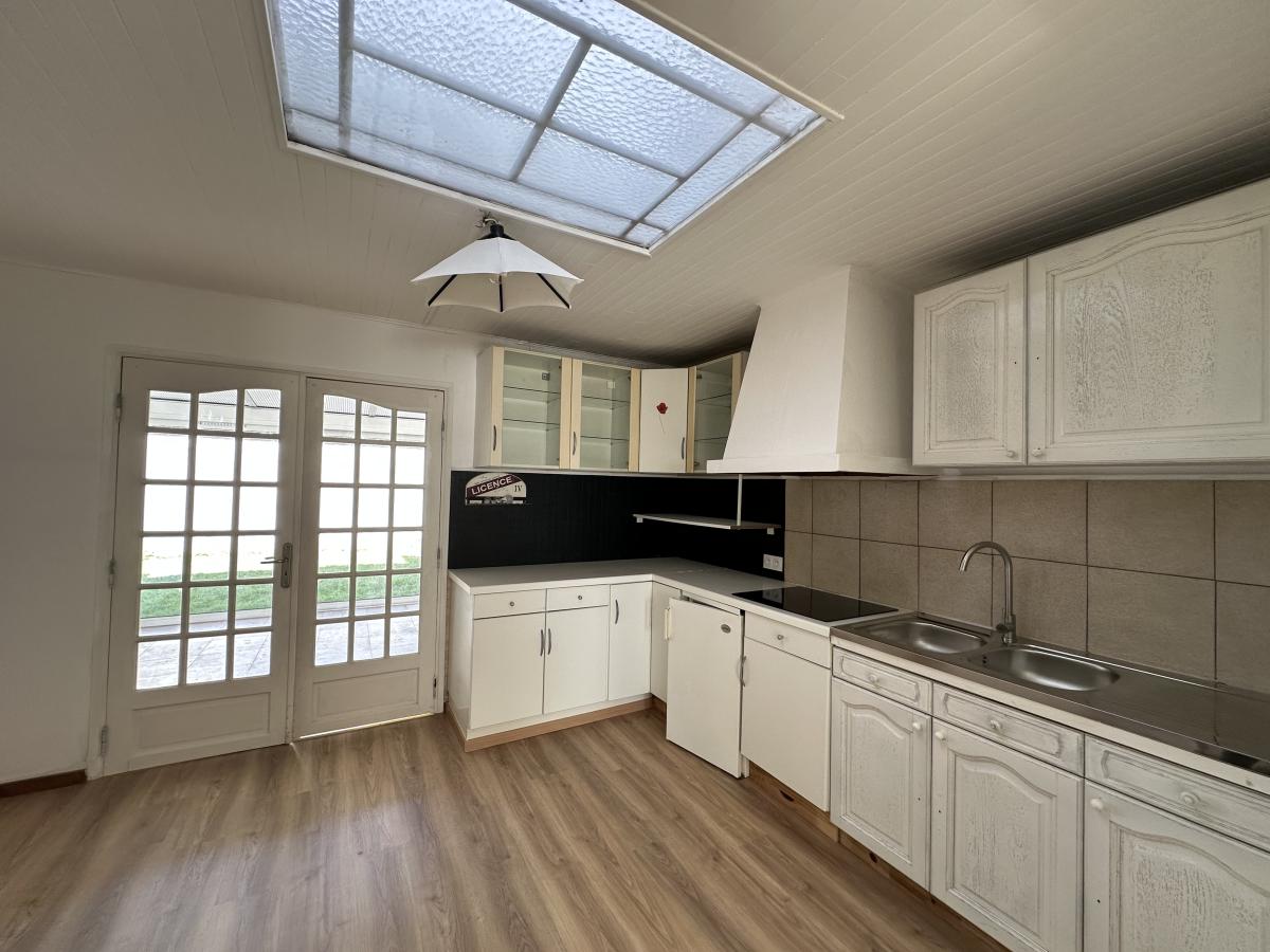 A vendre sur la commune d'Haubourdin, charmante maison des années 50 entièrement rénovée d'environ 74 m² habitable, bâtie sur une parcelle d'environ 160 m², comprenant un hall d'entrée, salon/séjour, cuisine équipée ouverte sur le séjour, salle de bains avec WC, véranda avec baies vitrées donnant sur le jardin, une cave et un garage à motos/vélos. A l'étage 2 chambres dont une grande avec placards intégrés. Chauffage central au gaz, chaudière neuve, installation électrique neuve, fenêtres double vitrage en PVC avec volet électrique, tout à l'égout. Idéalement située dans rue calme, à proximité des écoles et commerces.