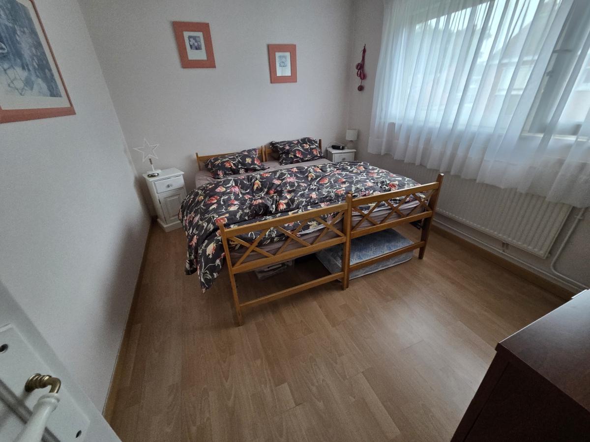 A l'étage, 3 chambres avec parquet flottant, 1 salle de douche actuelle, un grand placard sur le palier.