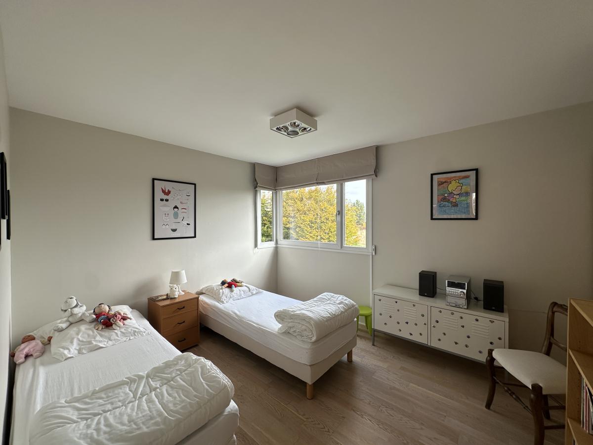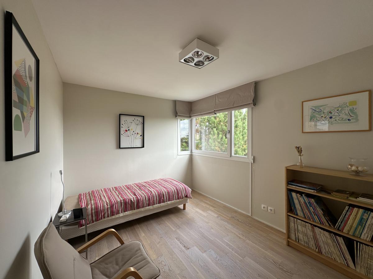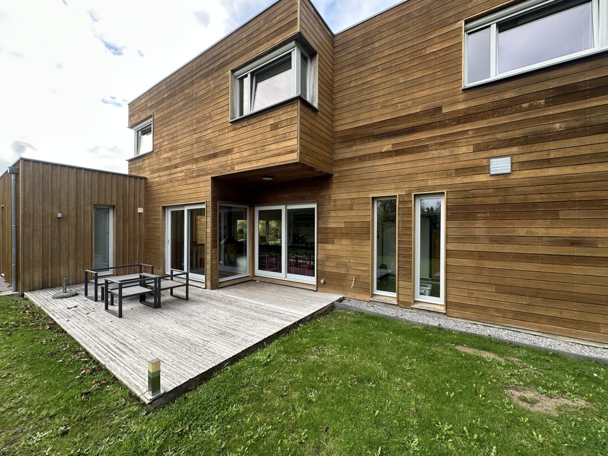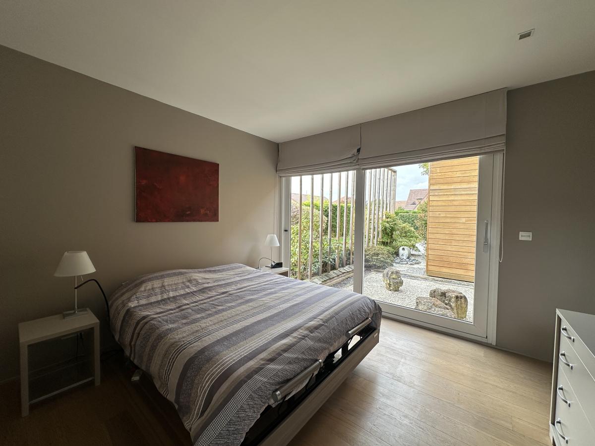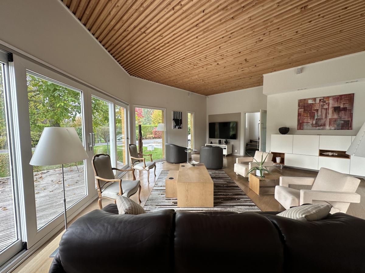 La maison bénéficie d'une luminosité exceptionnelle par ses nombreuses ouvertures et offre une vue agréable sur le jardin.